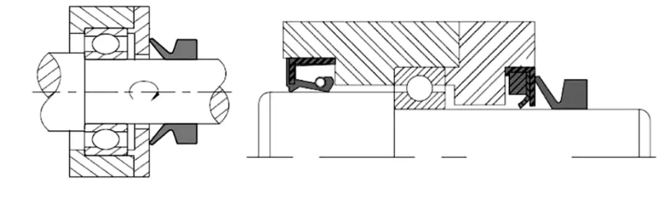 Alkalmazási forgatókönyv: A csapágy alkatrészeinek tömítése, durva környezethez, ahol a fő pecsét hajlamos a kudarcra. Ipari berendezések, mérnöki gépek, vízszivattyúk és egyéb forgó végű, lezárási alkalmak, amelyek vízálló és porállóak.
