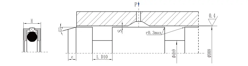 RC2054| Rekesznyílás D H9 | Horony átmérőjű D H9 | Horony szélessége L+0.2 | Sugárirányú távolság smaximumimumimumimumimum | Lekerekített sarok R -tólmaximumimumimumimumimum | Kamer Zminiszterelnökiszterelnökiszterelnök | |