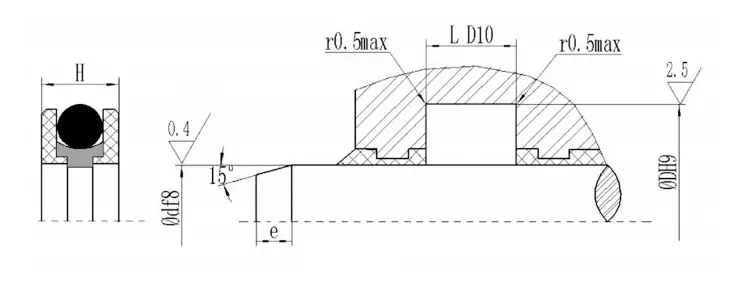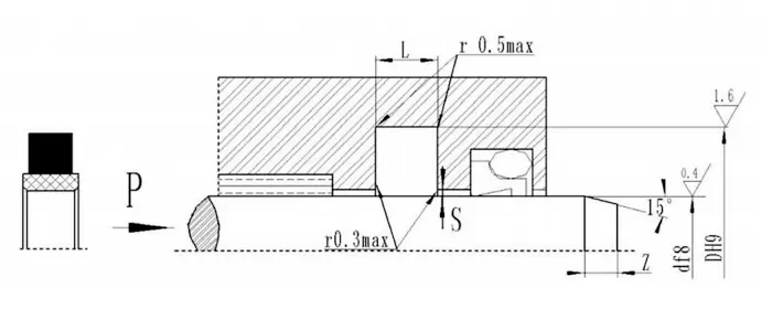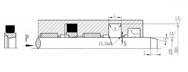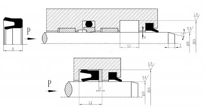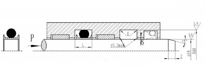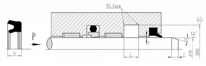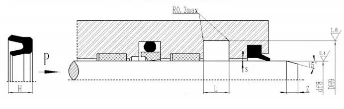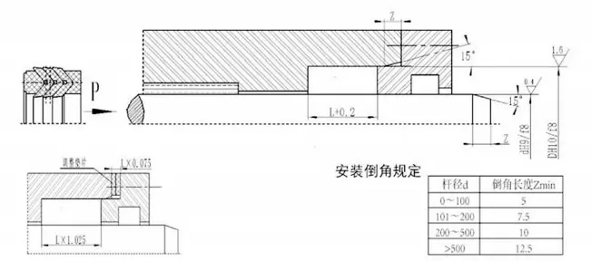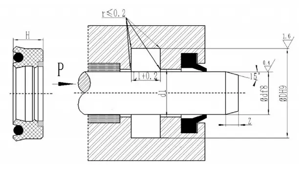 A V alakú kombinált tömítés a tömítés tengelyirányú méretének beállításával érheti el a legjobb tömítést és súrlódási állapotot. A hosszú távú működés utáni kezdeti kopás az axiális méret beállításával meghosszabbítható. Javasoljuk, hogy a tömítő üreg állítható tengelyirányú mérete 1,025 l -re legyen, és a kiigazítási összeg 7,5%L.