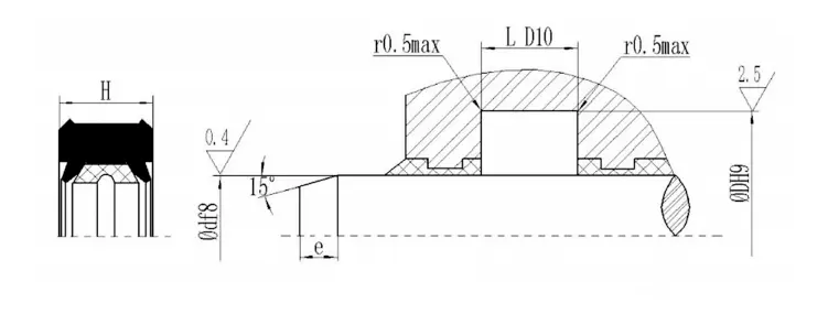 A tengely YXD típusú tömítésgyűrűje egy aszimmetrikus tömítés, amelyet kifejezetten a dugattyúrúdon használnak. Ez alkalmas a hidraulikus viszonzó mozgás egyirányú tömítésére, és jó tömítési teljesítménygel rendelkezik. 12 ~ 32mPa alatt történő használat esetén tartógyűrűre van szükség a sarokon. A horony megfelel a JB/ZQ4265-97 szabványnak. Jellemzői: